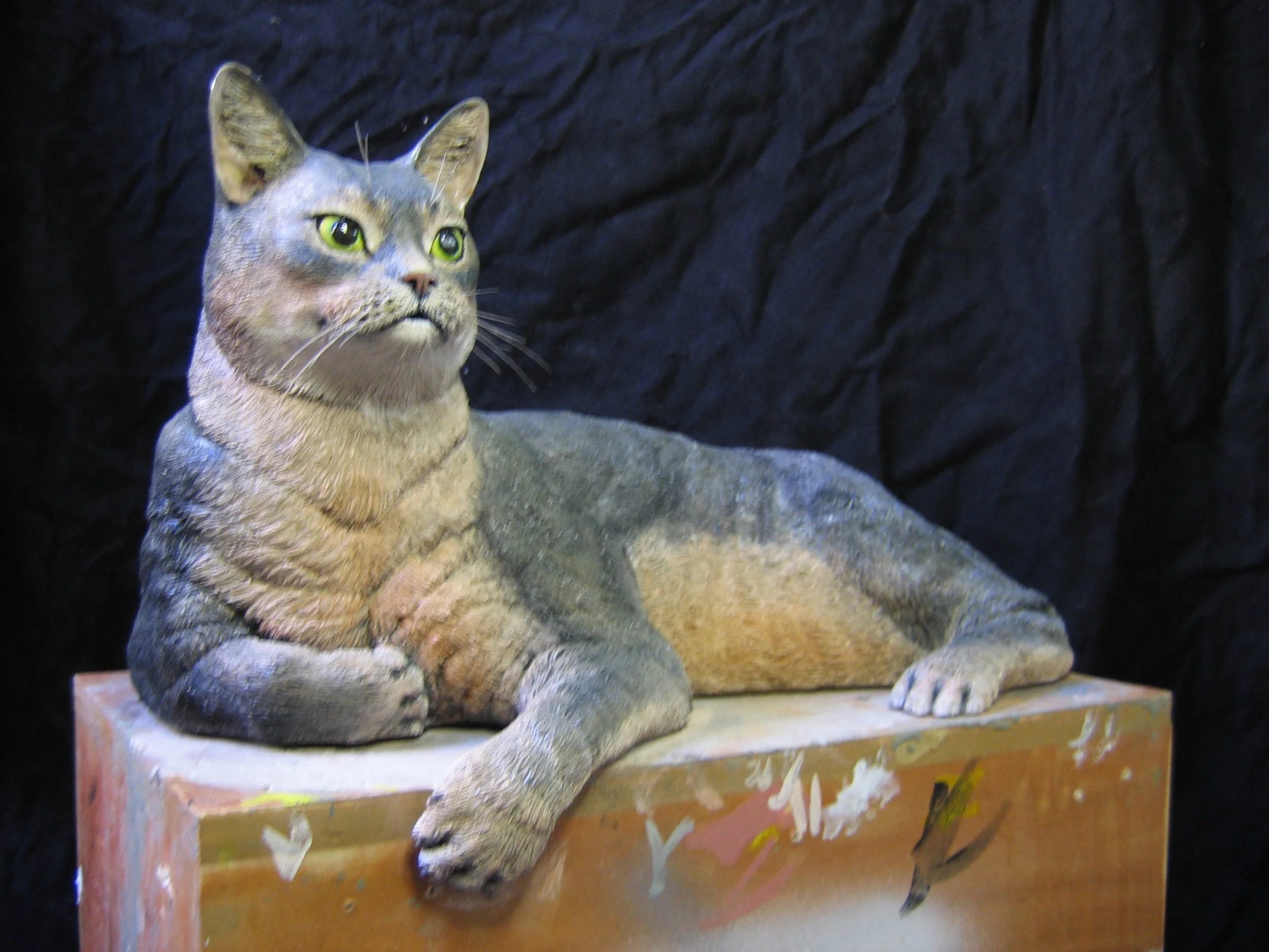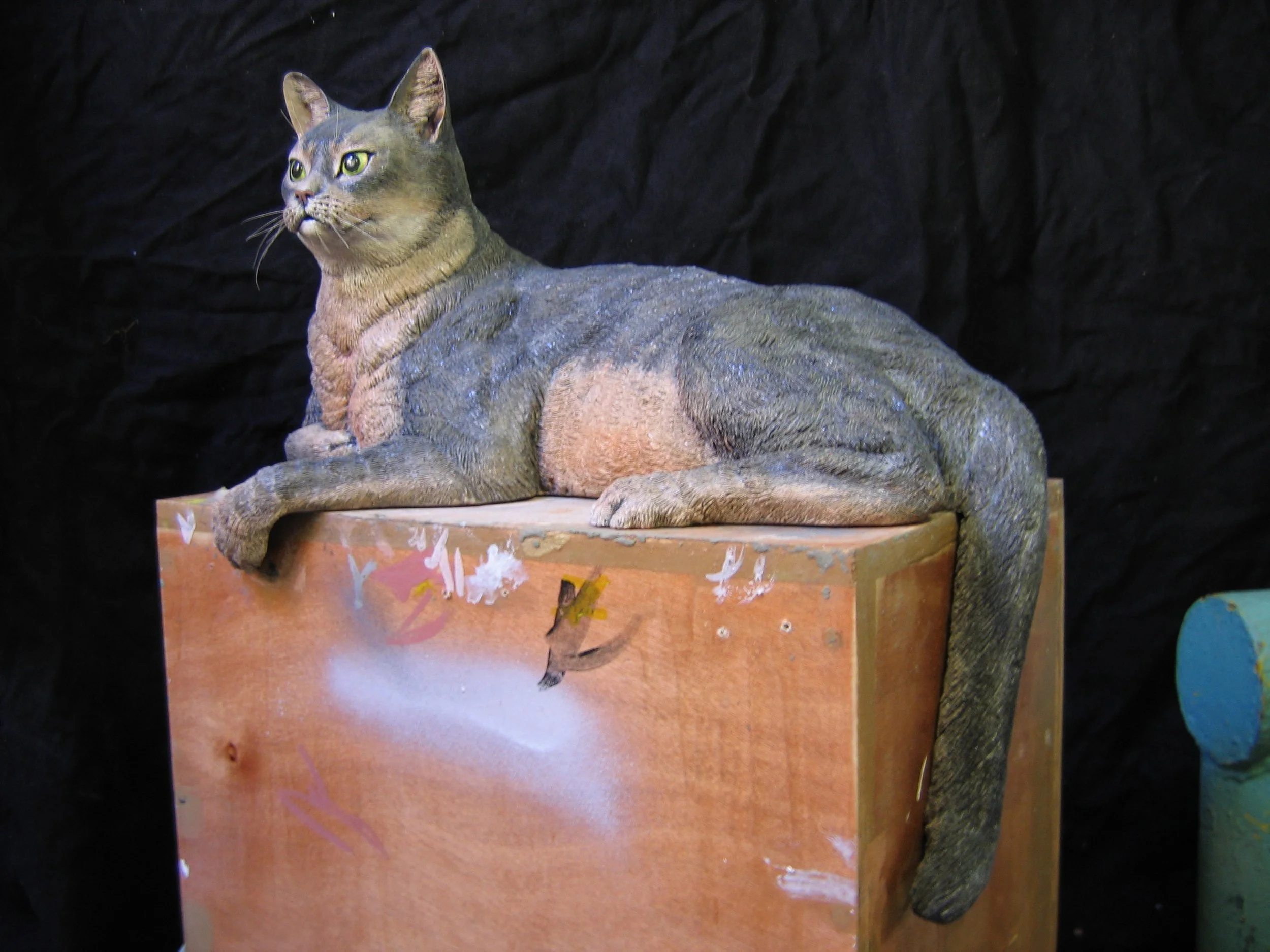"Ponki" a portrait of Wolfgang Peterson's favorite cat sculpted in Roma clay and cast in fiberglass